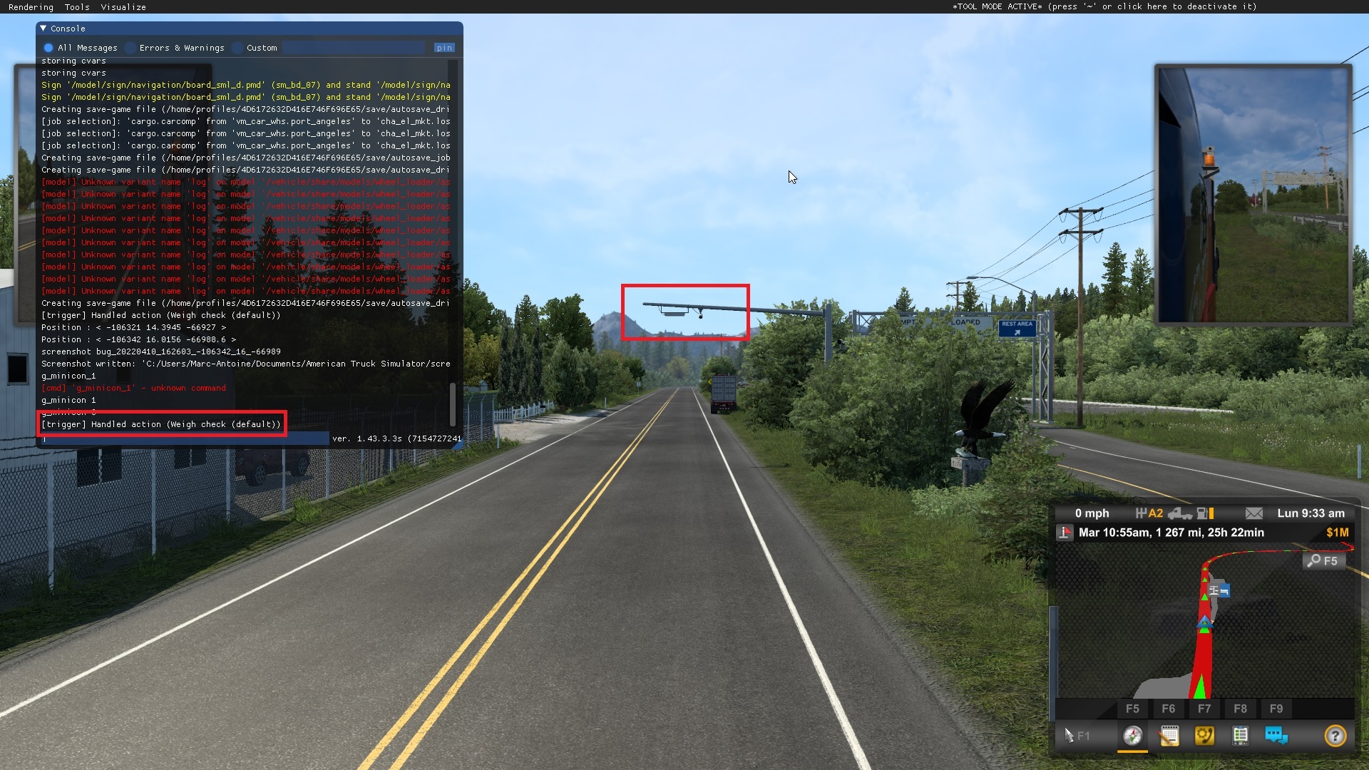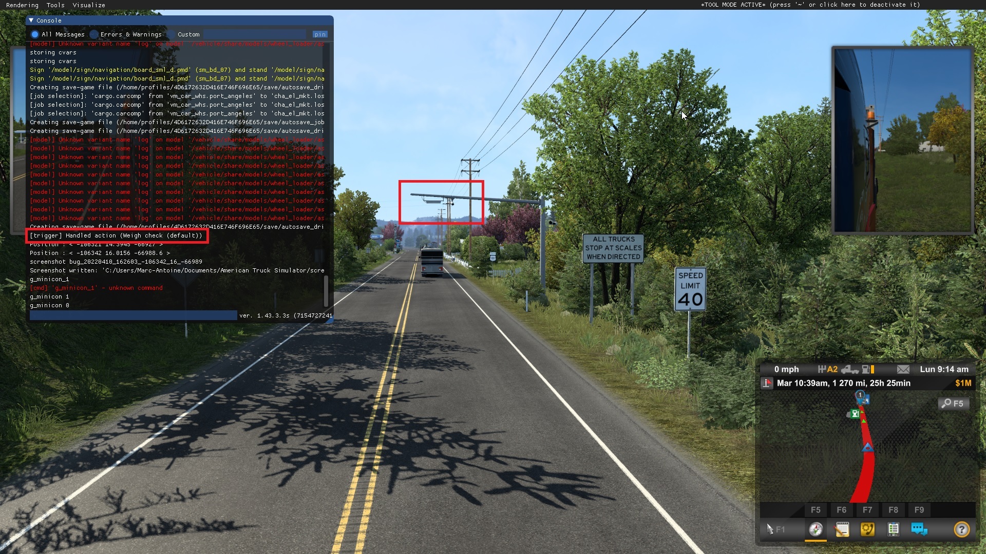 00:28:27.911 : [trigger] Handled action (Weigh check (default))There is a delay between the two lines of the weigh station in the gamelog while I take the screenshots. ^^
